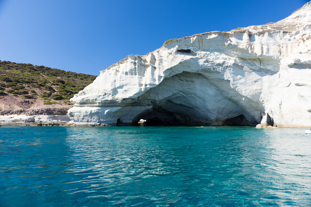 The entrance of Sykia Cave at the west part of Milos.