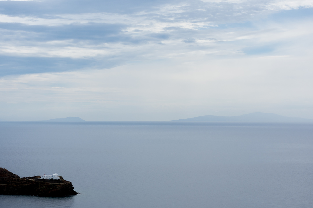 When the calling equals danger. Somewhere in Sifnos looking east towards barely seen Strogillo.